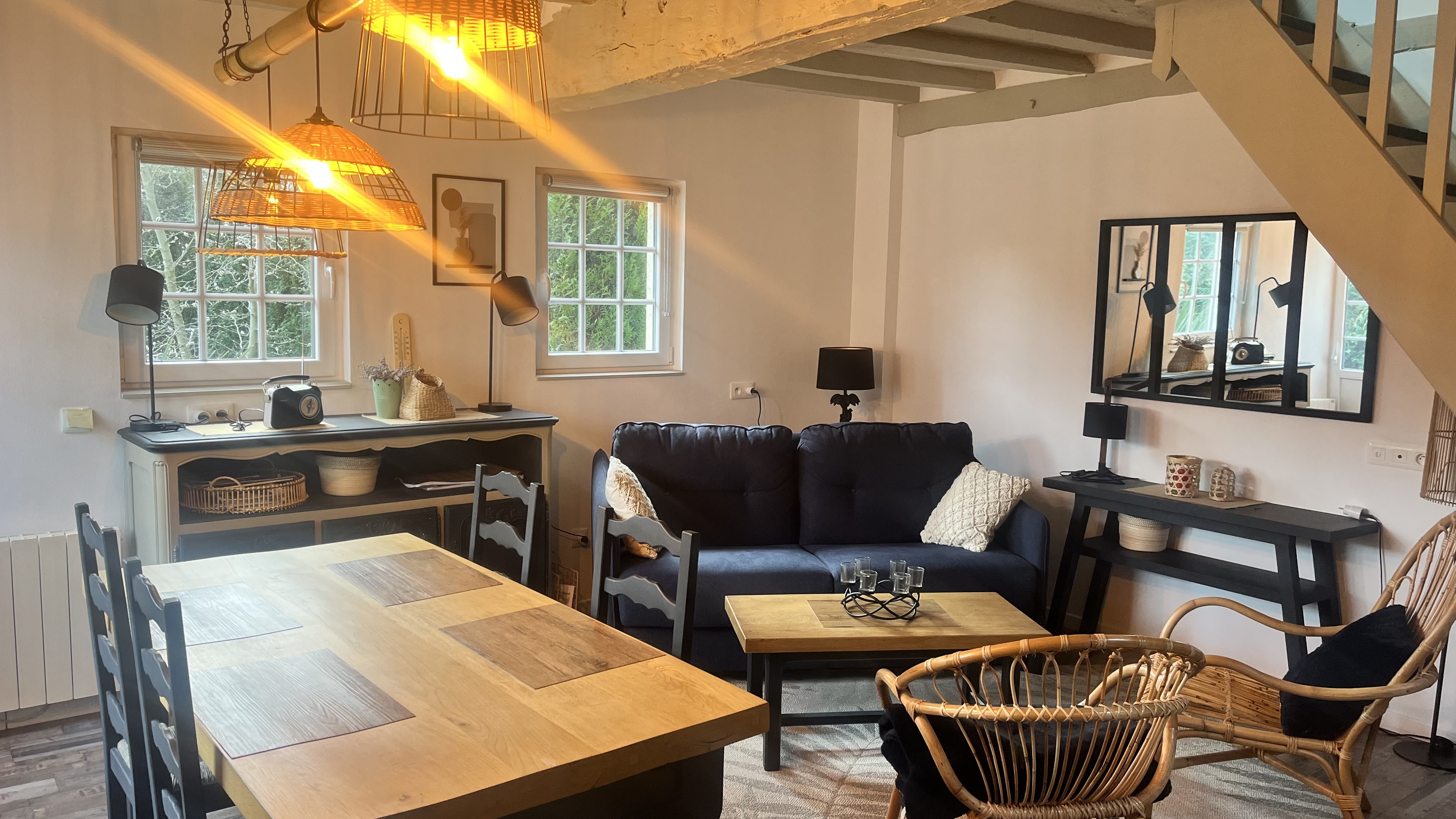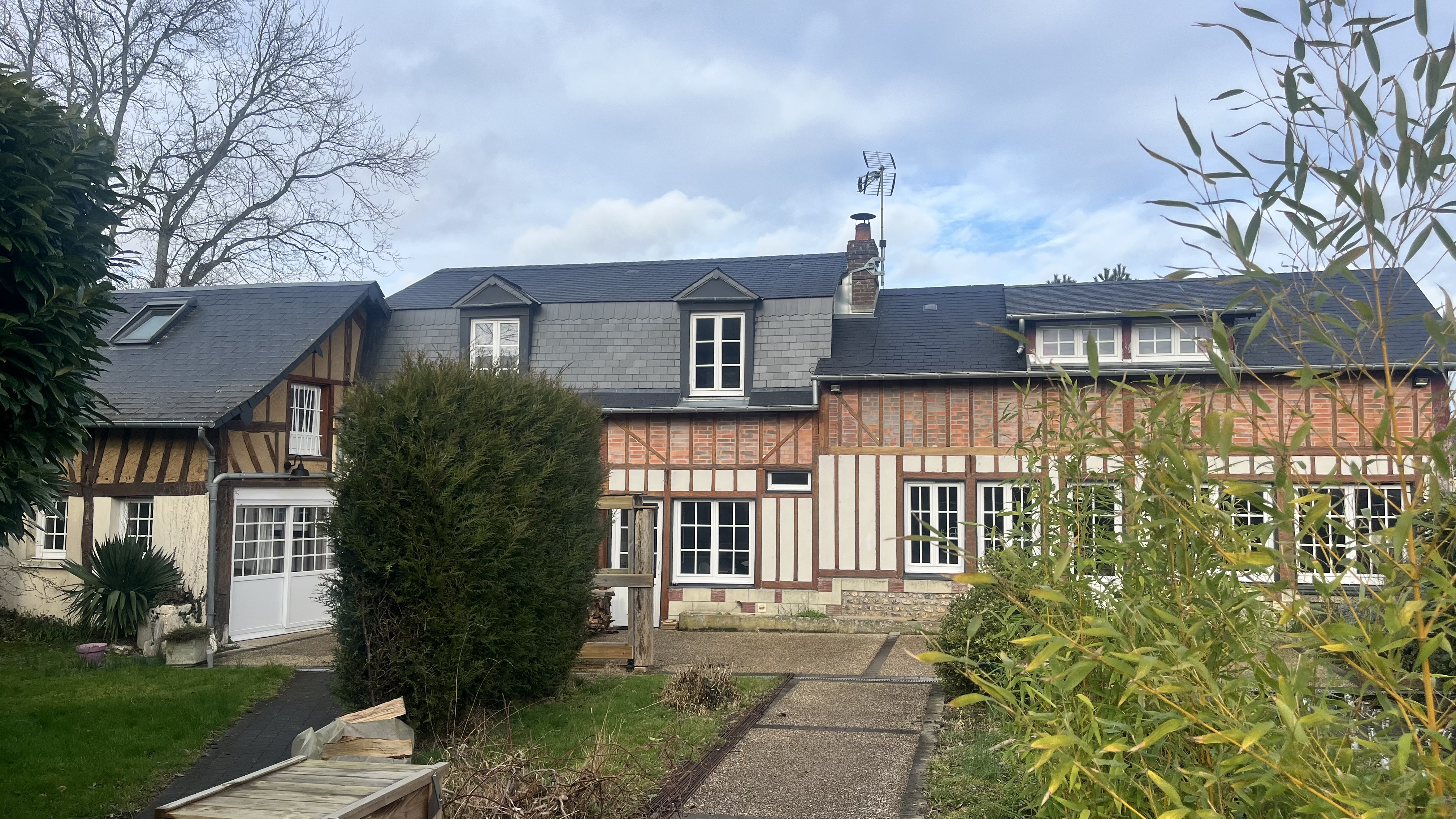 Honfleur à 15mn, ensemble immobilier avec une maison d' habitation avec 3 chambres, séjour spacieux et lumineux avec cheminée, cuisine séparée, wc, salle de bains. Logement indépendant (pouvant communiquer avec le logement principale) avec séjour, cuisine, chambre et salle de douches/wc. Terrain à arboré d' env 1000m² avec double garage independant . PARFAIT ETAT ET PROCHE COMMERCES Contact Stéphane LEGENTIL 06 25 74 48 67
